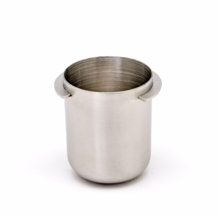 Increase workflow, keep your workspace clean, and ensure that all of your ground coffee gets into your portafilter with the Rhino Coffee Gear Short Dosing Cup. Made of stainless steel, this cup is strong and durable, and will suit most lever arm grinders on the market including EK43.